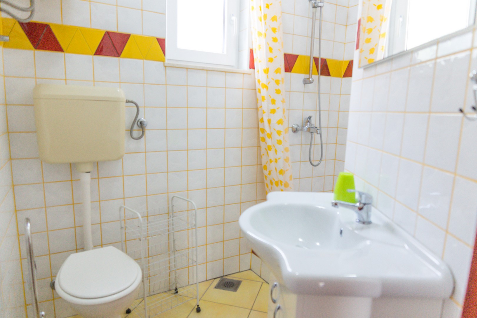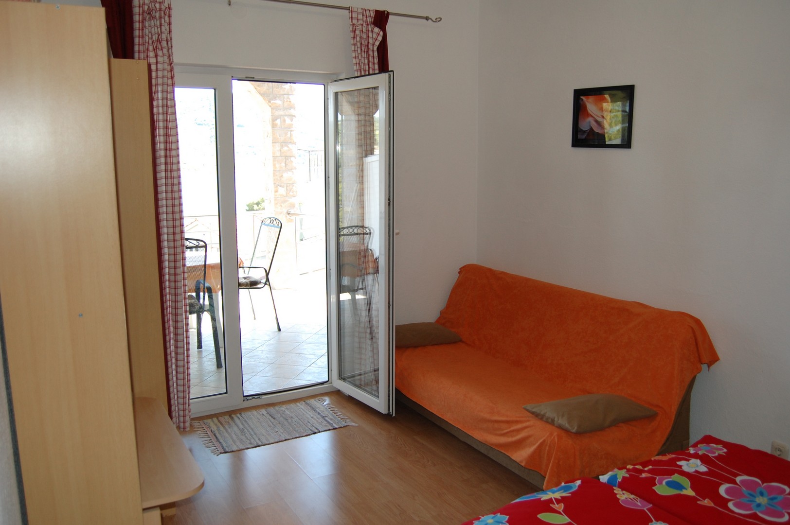 65m2; zwei Schlafzimmer, von denen das erste ein Doppelbett und ein Schlafsofa hat, und das zweite Schlafzimmer zwei Einzelbetten; Küche mit Esszimmer, Badezimmer mit WC, Balkon mit Meerblick (Balkonausgang ist nur vom ersten Schlafzimmer möglich), Klimaanlage, Sat-TV, Wi-Fi, erster Stock, Parkplatz