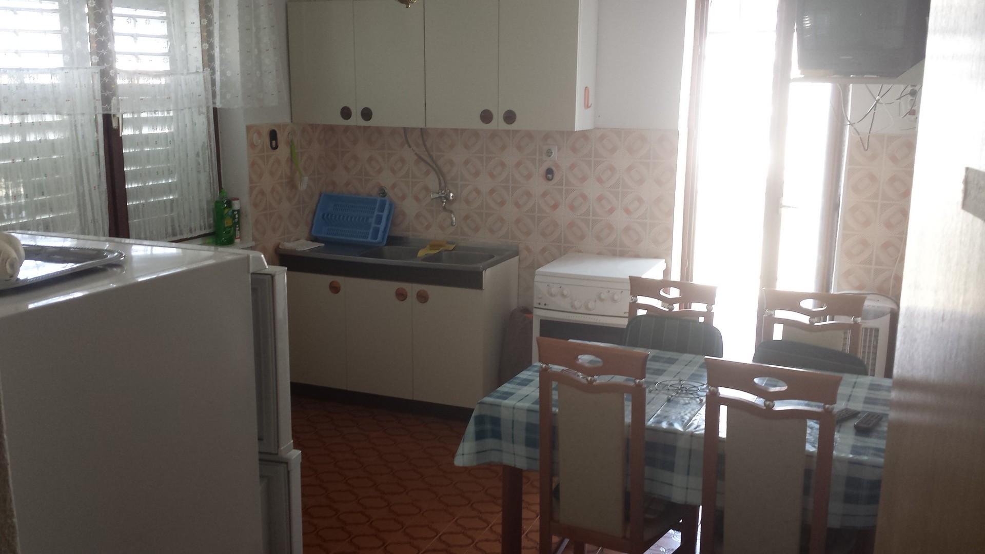 Zwei Schlafzimmer mit Doppelbetten, eins mit einem zusätzlichen Einzelbett, Küche, Badezimmer mit WC, separates WC, Terrasse, TV, WLAN, Erdgeschoss, Parkplatz