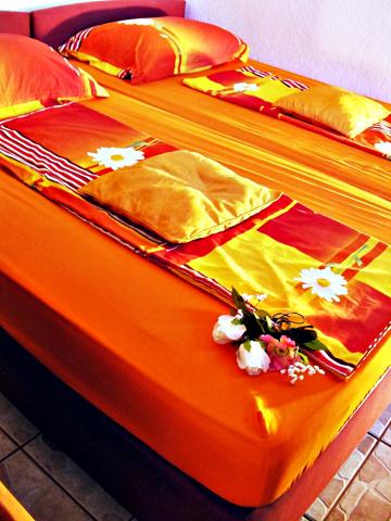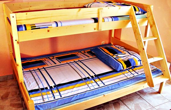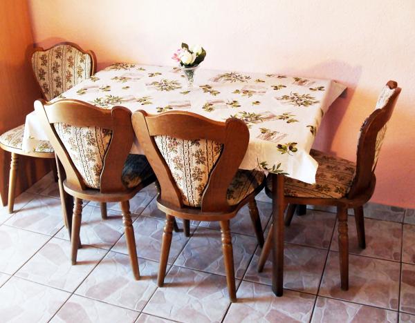 55m²; zwei Schlafzimmer mit Doppelbetten und ein Zusatzbett, Küche mit Esszimmer, Badezimmer mit WC, Balkon, WLAN, Parkplatz