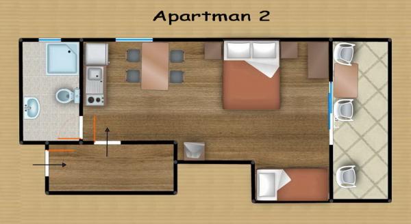 Studio apartment of approximately 35 m2 in Primosten. Bed for 2 people and bed for 1 person.