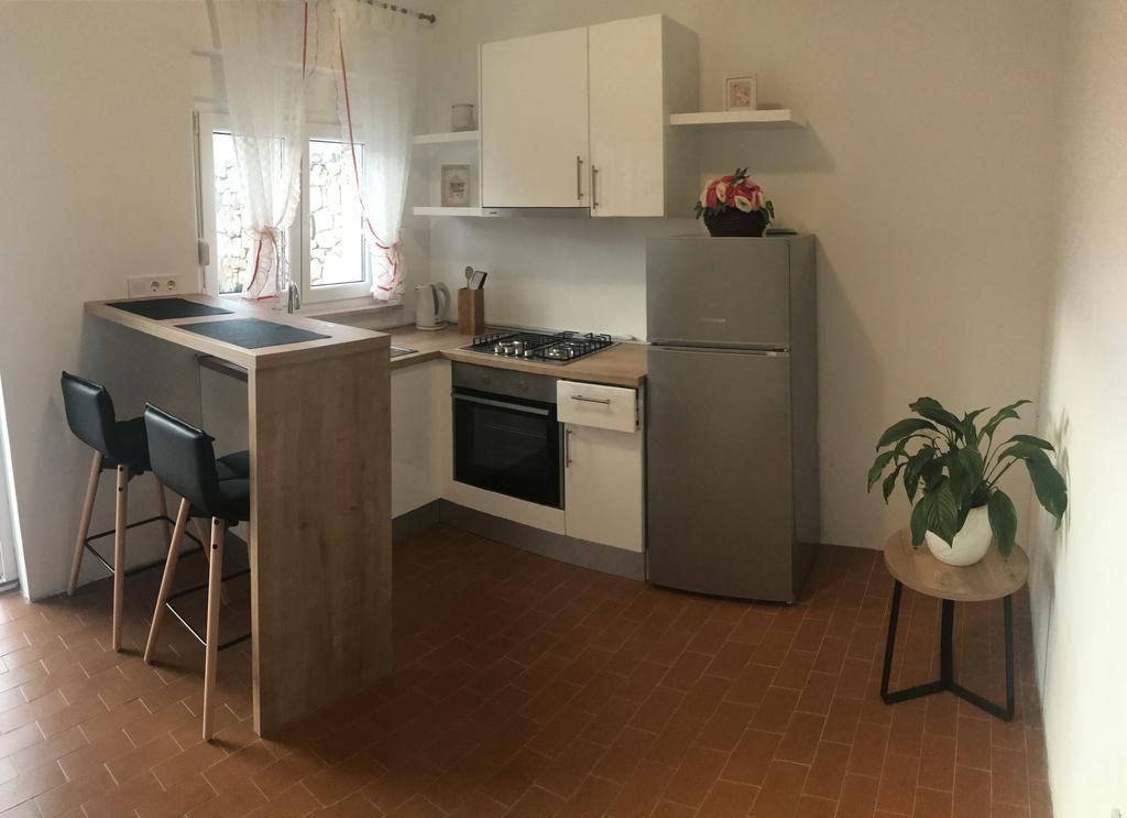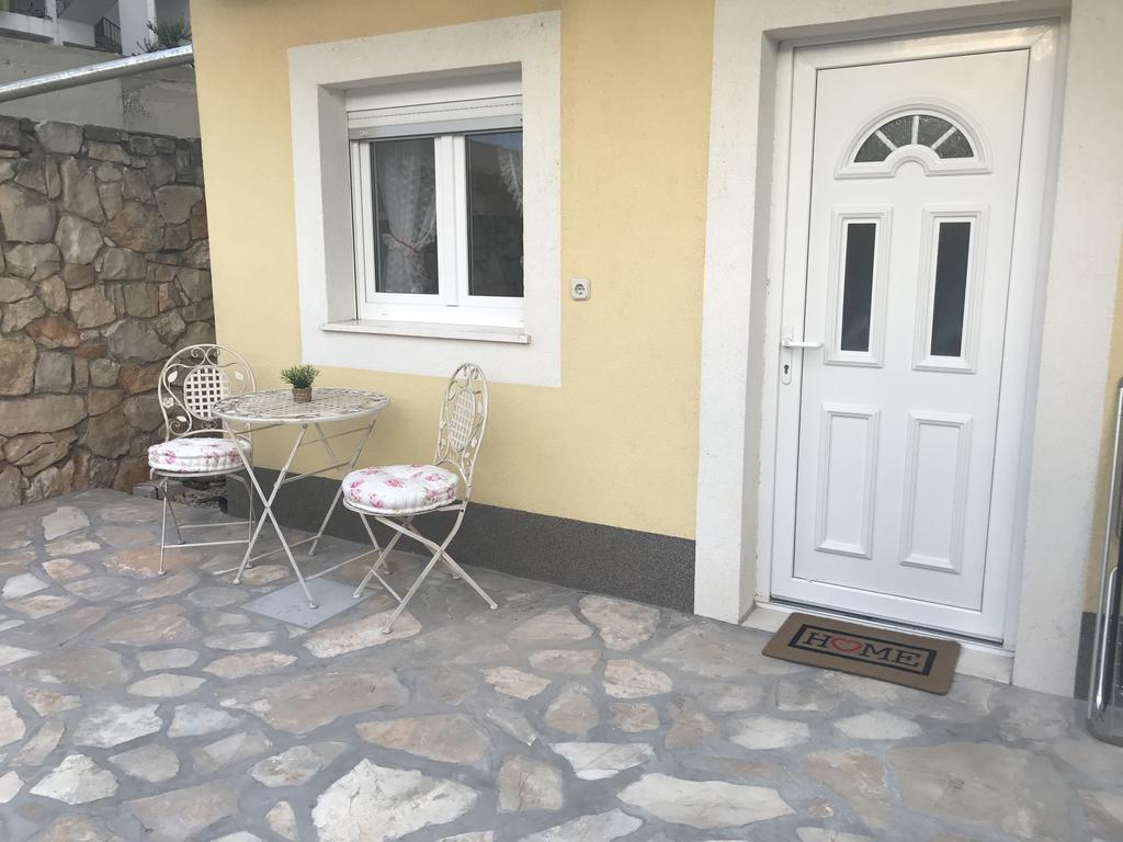25m²; Bedroom with double bed, kitchen with dining room, bathroom with toilet, terrace, air conditioning, TV, Wi-Fi, ground floor, parking