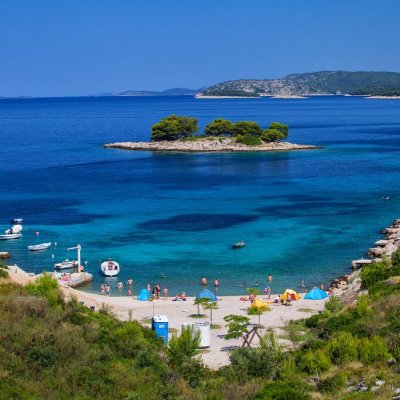 Bilo is a small village situated 17 km from town Sibenik and 6 km before Primosten, by the adriatic road, on the sea.  It is known for the beautiful beaches and bayes with crystaly clear sea and mediterranian vegetation. The beaches provide the privacy and isolation to the guests (swimmers).