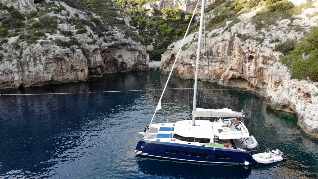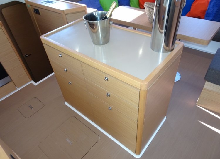 Le yacht est un produit haut de gamme de la construction navale industrielle qui allie avec succès confort et performances de navigation. Il offre un confort en abondance et des activités nautiques relaxantes qui s'ajoutent à des moments inoubliables à la voile. Cinq cabines confortables à bord (plus le skipper) sont équipées de toilettes séparées comprenant une douche, un lavabo et des toilettes ergonomiques. Des lits doubles pleine grandeur avec de nombreux rangements contribuent à un hébergement confortable, tandis que des solutions d'éclairage et un design intérieur innovants reflètent le luxe et le charme des yachts DUFOUR, DUFOUR CATAMARAN et JEANNEAU.