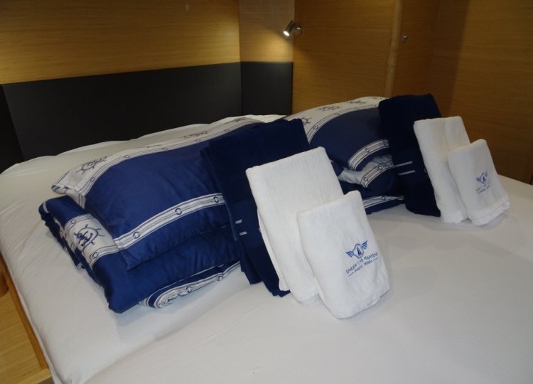 | Other equipment | Main Sail Standard, Navigation kit, Anchor, Speedometer, Pillows and blanckets, Wind Speed Indicator/Network Wind, Linen, Steering Wheel (SW)/Tiller (T), Life jacket, Nautical charts and nautical guide, Steering, Bow Thruster, Main Sail Full Batten/Lazy Jack |