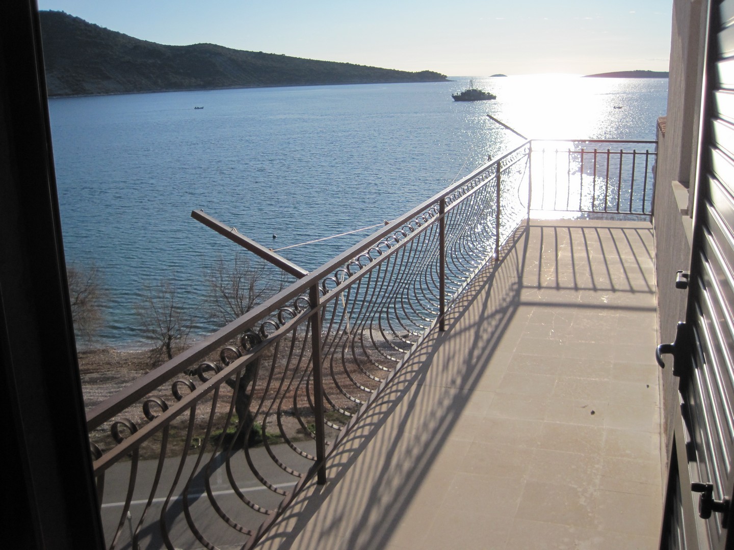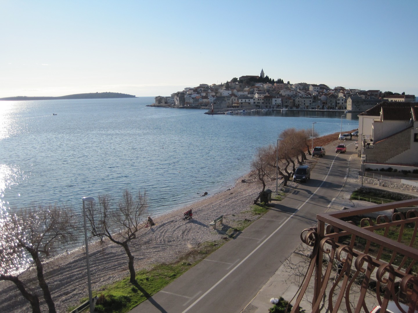 10 m de la mer et de la plage, terrasse avec vue sur la mer et vue sur Primošten, cuisine, 2 chambres, chacune avec lit double et salle de bain privée, air conditionné, TV par satellite, deuxième étage, parking