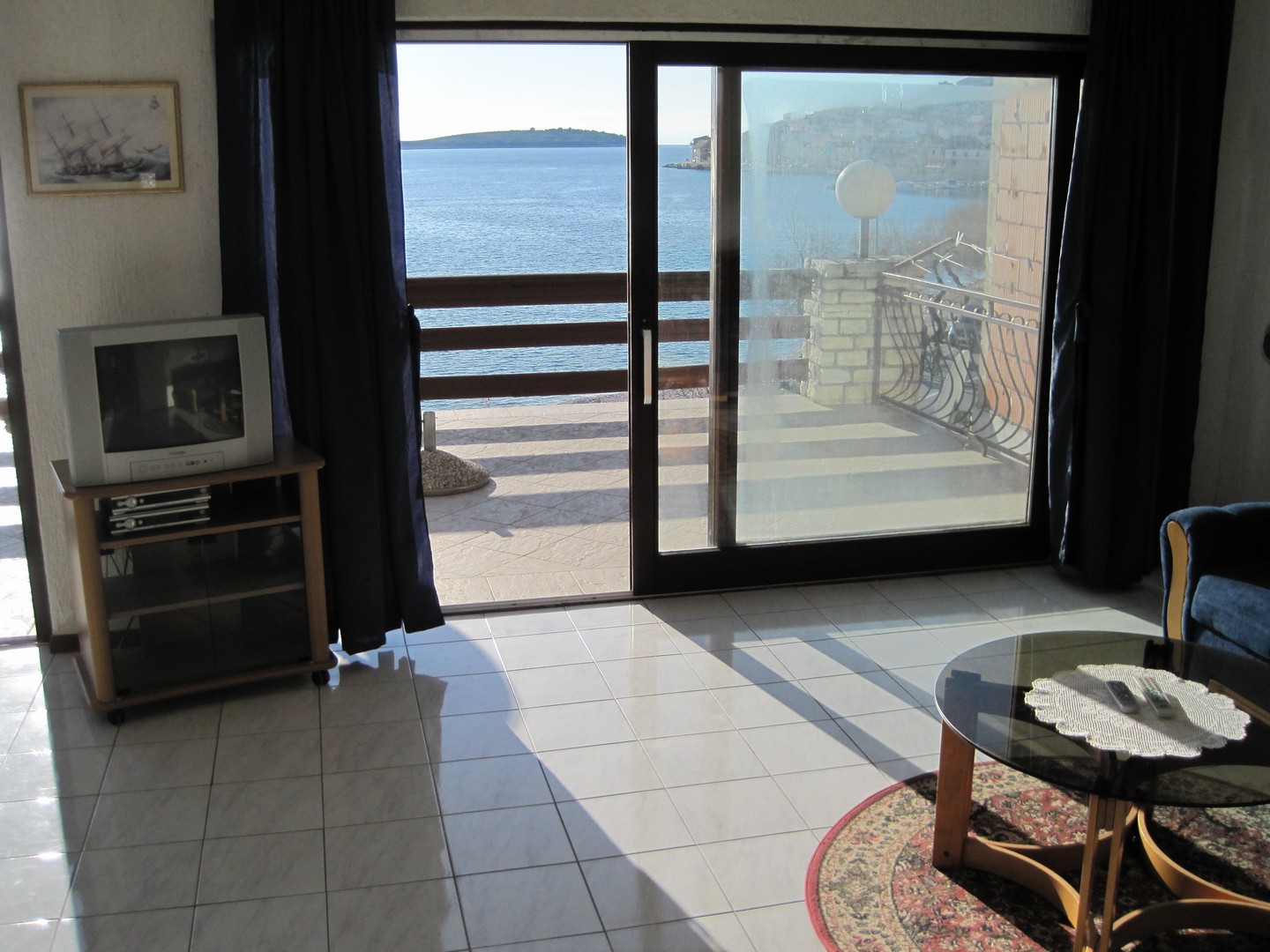 10 m de la mer et de la plage, grande terrasse avec vue sur la mer et Primošten, cuisine, 3 chambres à coucher, chacune avec lit double et avec salle de bain privée, lit supplémentaire pour deux personnes dans le salon, climatisation, TV satellite, deuxième étage , parking