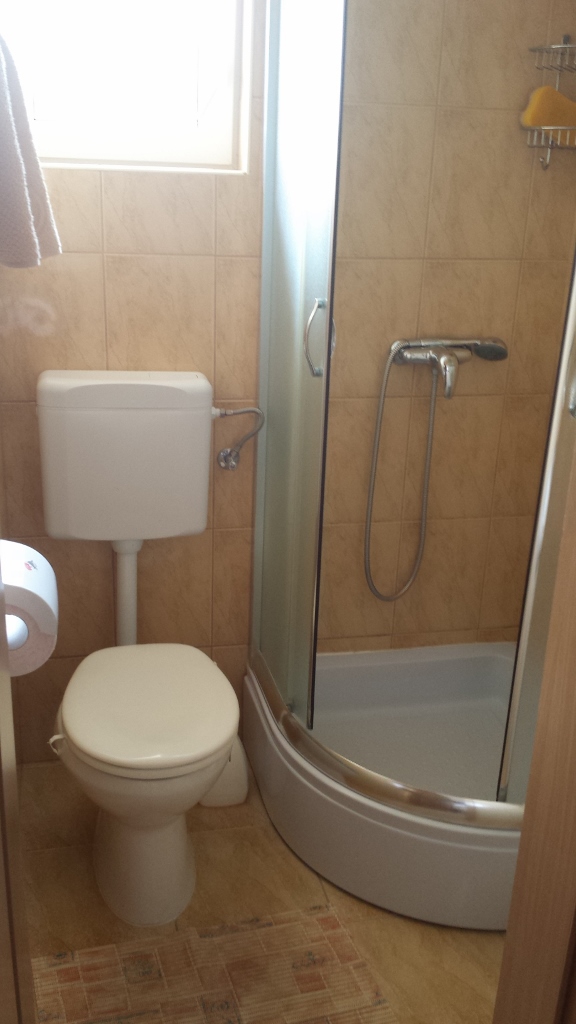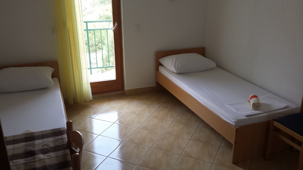 à environ 400 m de la mer et de la plage et à environ 500 m du centre, balcon avec petite vue mer, deux lits simples (connexion à un lit double), cuisine, salle de bains, TV, climatisation, wi-fi, parking