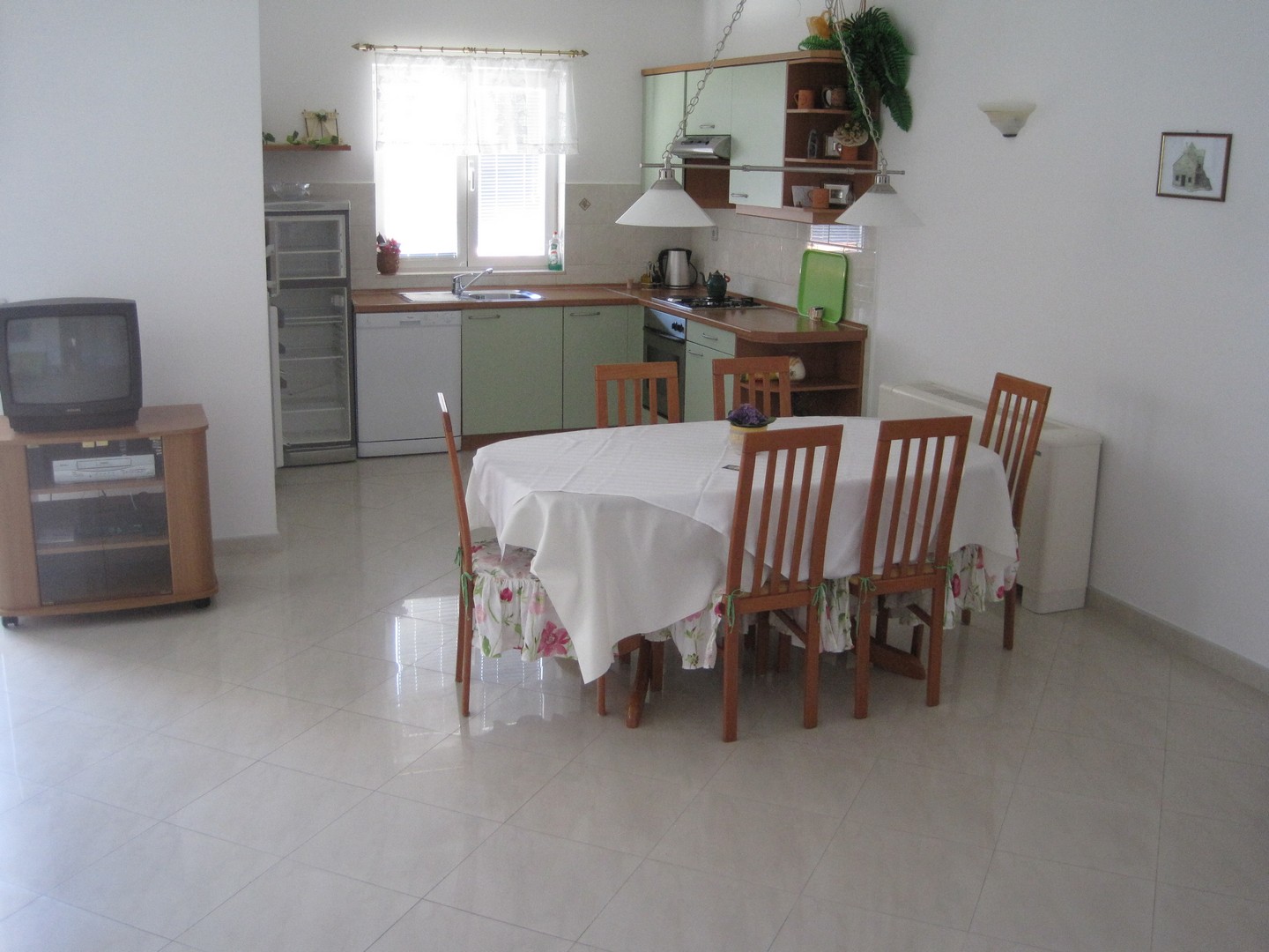 Deux chambres avec lits doubles, cuisine avec coin repas et salon avec canapé-lit, salle de bain avec toilette, toilettes séparées, balcon avec vue sur la mer, climatisation dans chaque chambre, lave-vaisselle, four à micro-ondes, télévision, Internet sans fil, premier étage, parking