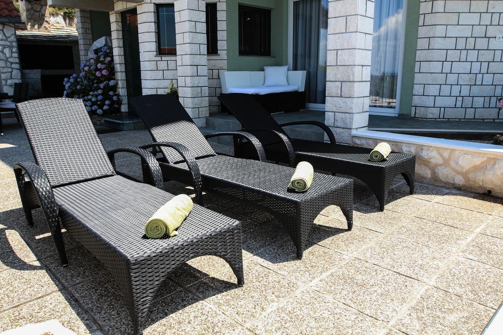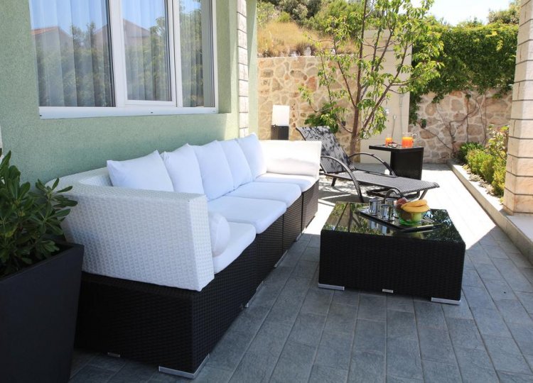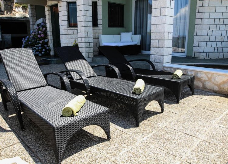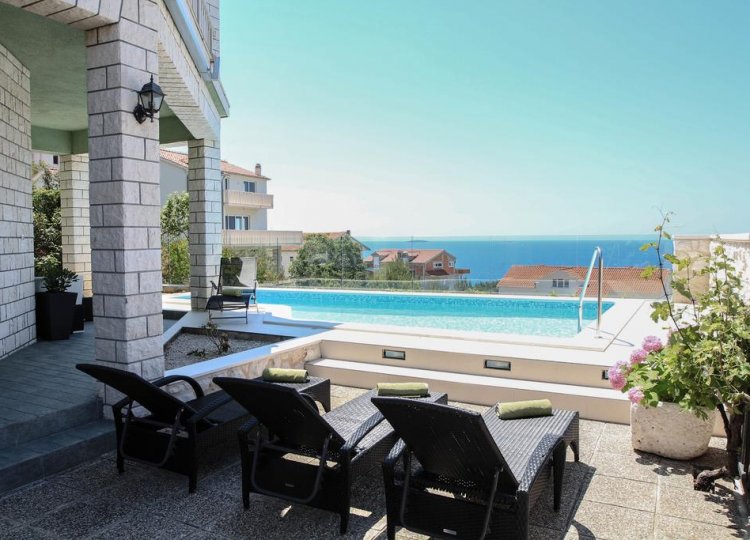 Sur plus de 280 m² sur 3 étages avec 4 chambres, cette villa peut accueillir 8 + 3 personnes. Au rez-de-chaussée se trouve le salon avec une terrasse donnant sur la mer. Au premier étage il y a 3 chambres à coucher. L'une d'entre elles est équipée d'une salle de bain et dispose d'une galerie avec 3 lits supplémentaires pour une personne chacun. Les deux autres chambres sont des chambres doubles avec une salle de bain. Au deuxième étage il y a aussi une chambre double avec salle de bain. La villa dispose de la climatisation dans chaque chambre et WiFi. Deux cuisines entièrement équipées avec une salle à manger au rez-de-chaussée et au premier étage. La piscine de 26 m² est chauffée, la température de l'eau est donc toujours parfaite. De plus, les clients peuvent utiliser un lodge de 25 m² sur la plage pendant leur séjour à la plage pour laisser leurs effets personnels ou se cacher un peu du soleil.