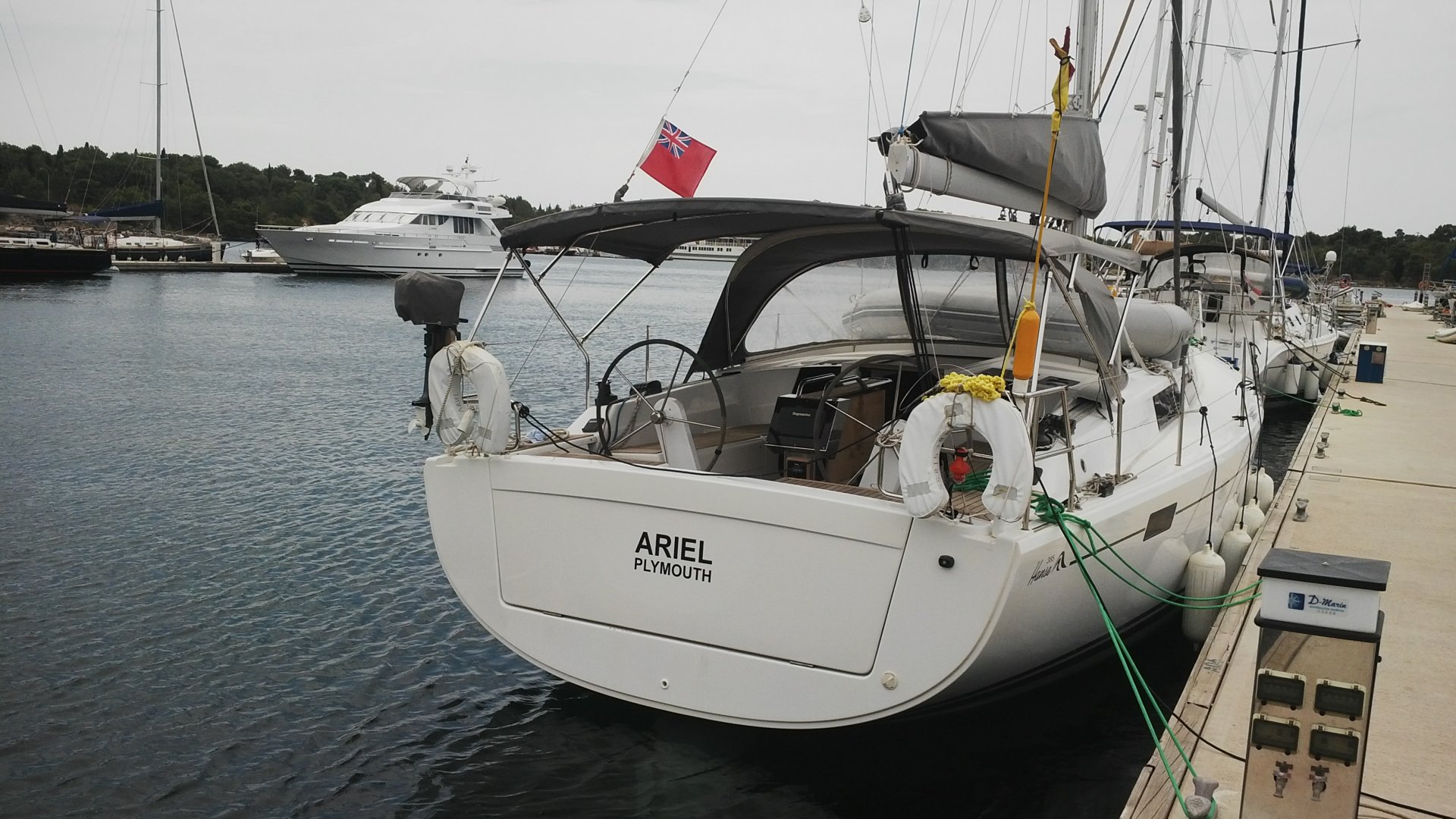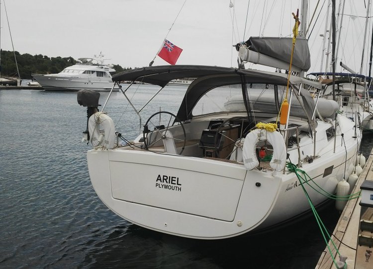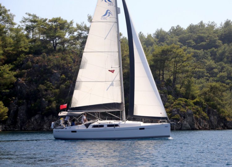Izvrsna jedrilica za ugodno jedrenje, opremljena s punim glavnim jedrom i samopokretnim flokom.
