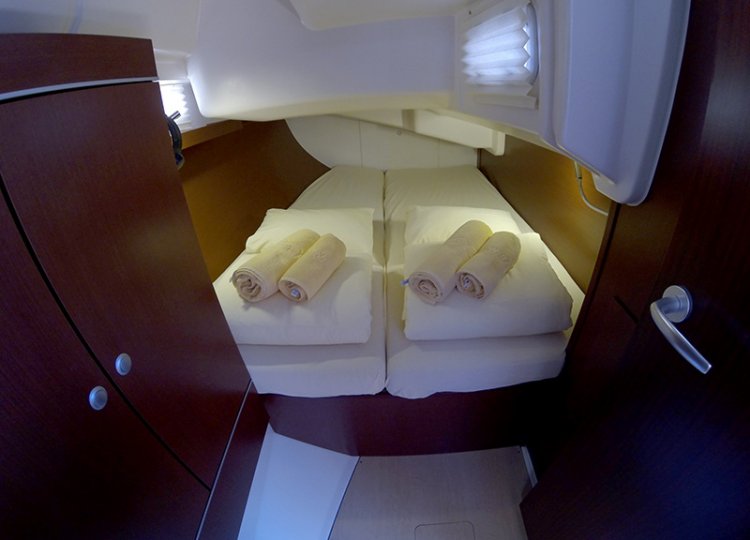 S 3 dvokrevetne kabine i jednom kupaonicom s tušem, može smjestiti do 6 osoba na brodu za savršen odmor.