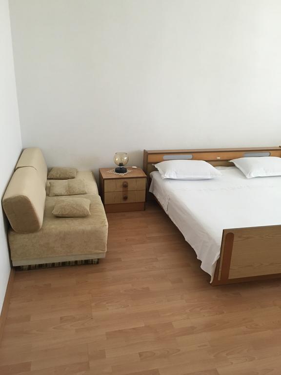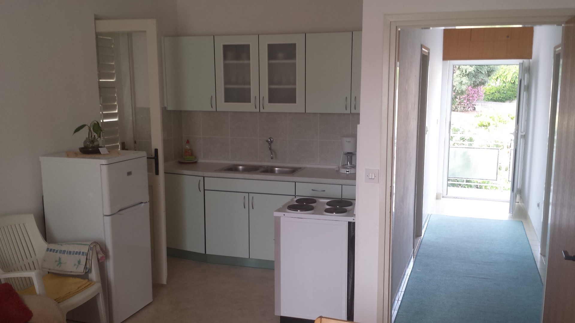 Dvije spavaće sobe s bračnim krevetima, kuhinja i dnevni boravak, kupaonica s WC-om, balkon, TV, wi-fi, prvi kat, parkirno mjesto
