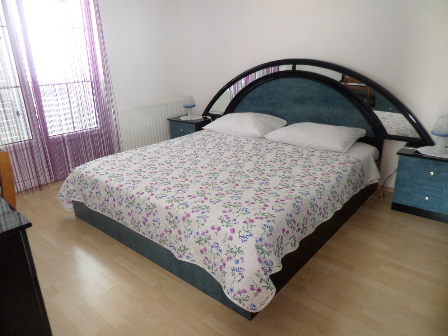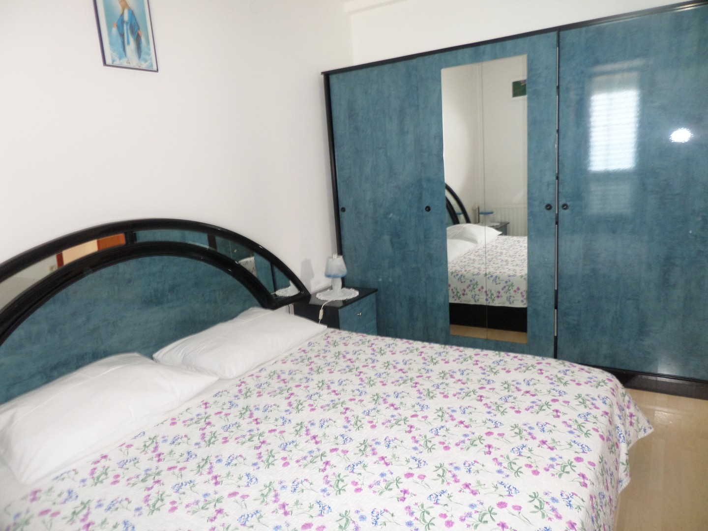 soba sa bračnim krevetom,kauč na razvlačenje u dnevnom boravku za jednu osobu (ili dvije manje), WC-kupatilo, SAT-TV, kuhinja, balkon sa pogledom na more i plažu, parking, 10 m od mora i plaže, 2. kat