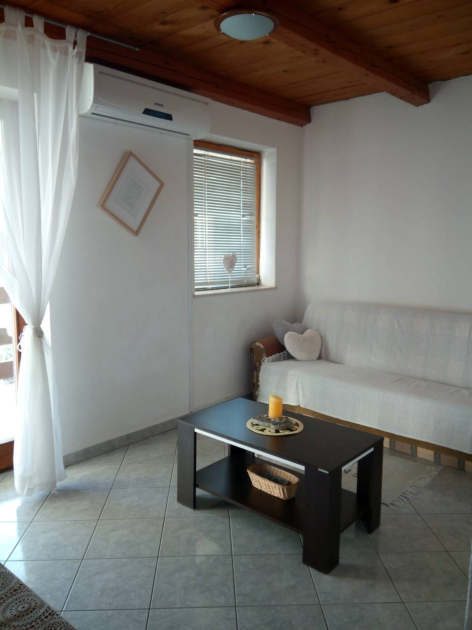 Apartman je udaljen cca 200 m od mora i cca 300 m od centra Primoštena,  dvije odvojene spavaće sobe s bračnim krevtima, kuhinja, dodatni ležaj u dnevnom boravku za 1 osobu,  kupaonica s WC-om, balkon, klima, TV, Wi-Fi, parking