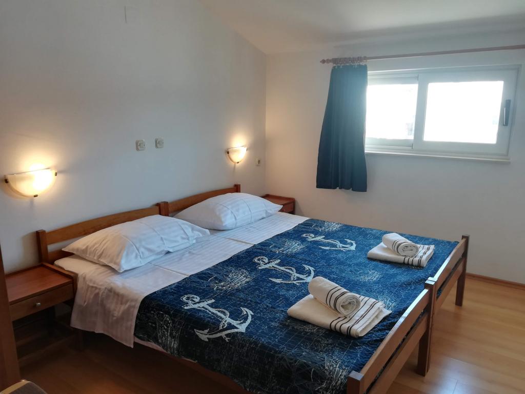 Apartman površine od 55 m2, 2 sobe s bračnim krevetom, kuhinja, kupaonica s wc-om, balkon, klima uređaj, TV, parkirno mjesto, 10 metera od plaže
