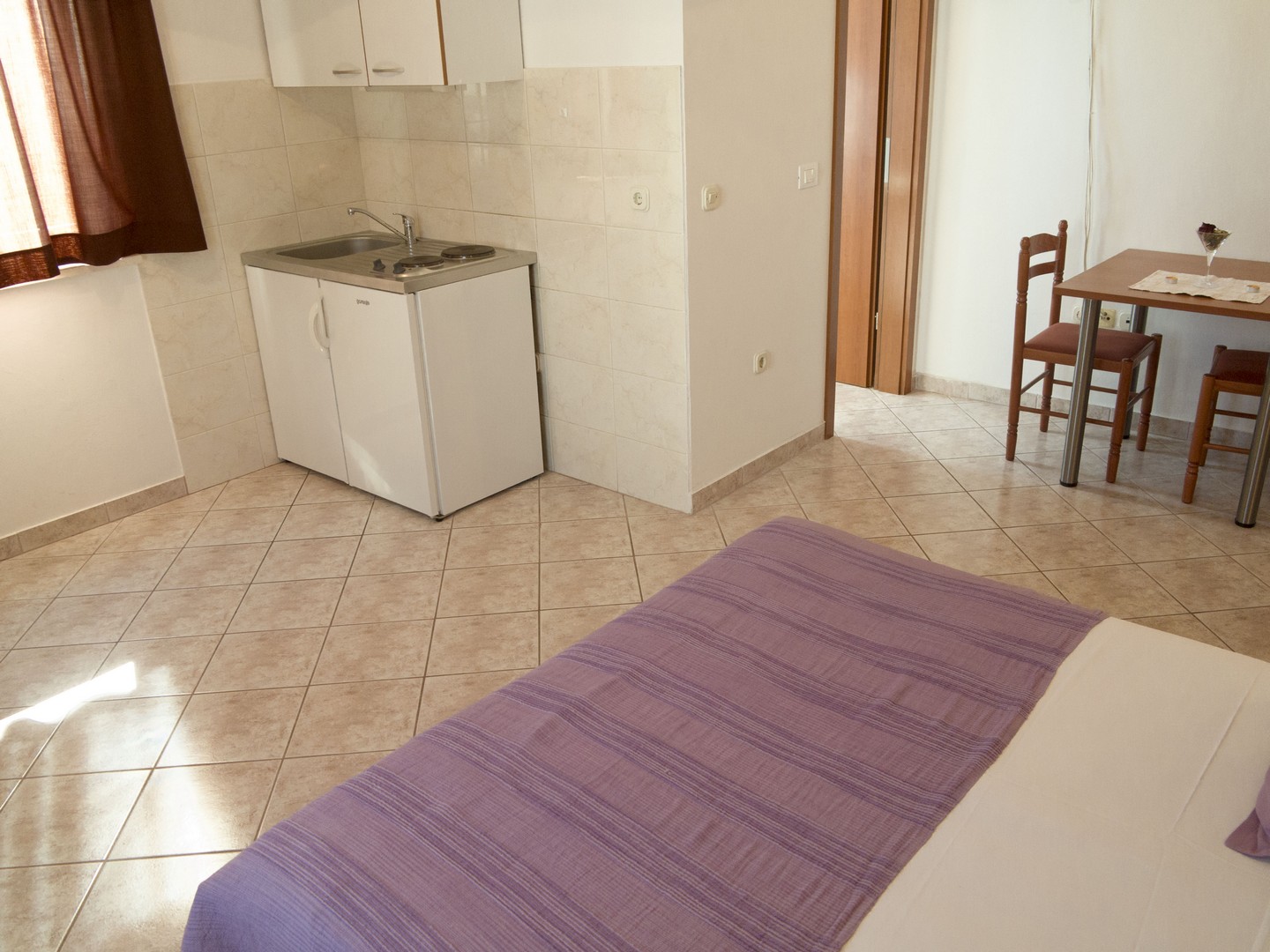 Sudio apartman veličine 25m² za dvije osobe - cca. 250m od mora i cca. 300 m od centra Primoštena, soba s kuhinjom, WC-kupaonica, balkon, klima, Sat-TV,  Wi-Fi, parking