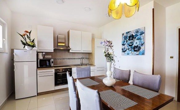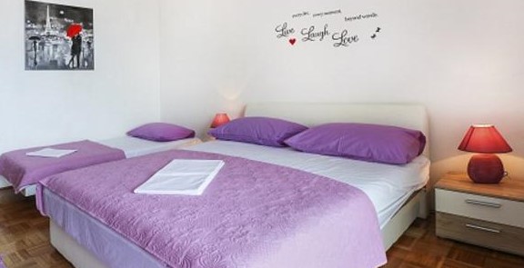 Apartman 60m², dvije spavaće sobe s bračnim krevetima od kojih jedna sadrži dodatno pomoćni ležaj, kuhinja s blagovaonicom, kupaonica s WC-om, balkon, klima uređaj, Sat-TV, wi-fi, parkirno mjesto