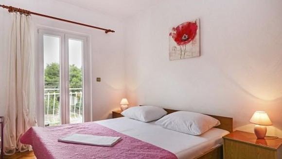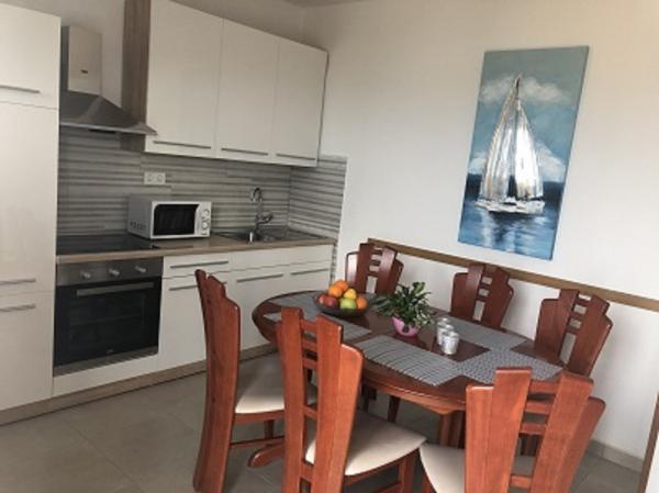 Apartman 100m², tri spavaće sobe s bračnim krevetima od kojih jedna sadrži dodatno pomoćni ležaj, kuhinja s blagovaonicom,2X kupaonica s WC-om, balkon, klima uređaj, Sat-TV, wi-fi, parkirno mjesto