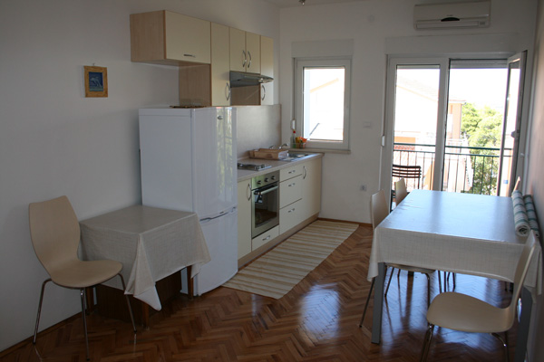 AP 4+1 Tip: Apartman , Broj kreveta: 2 , dodatni ležajevi: 1 , spavaće sobe: 2 Spavaća soba 1: 1 veliki bračni krevet Spavaća soba 2: 1 veliki bračni krevet Dnevni boravak: 1 kauč na razvlačenje Apartman sa dvije odvojene spavaće sobe , udaljen cca 250 m od plaže. Pregledaj