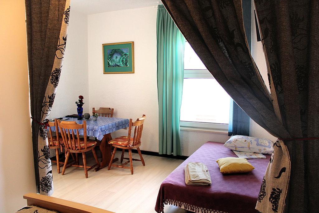 Studio apartman 35m², bračni krevet, krevet na rasklapanje, kuhinja s blagovaonicom, kupaonica s WC-om, balkon, klima uređaj, Sat-TV, wi-fi, parkirno mjesto