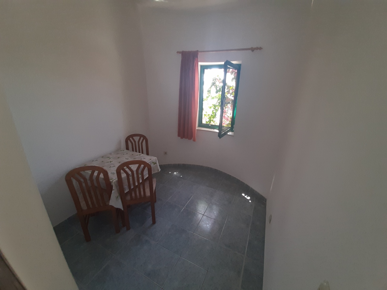Odvojena spavaća soba s bračnim krevetom, kuhinja s blagovaonicom, kupaonica s WC-om, terasa, klima uređaj, TV, wi-fi, vanjski roštilj, prizemlje, parkirno mjesto