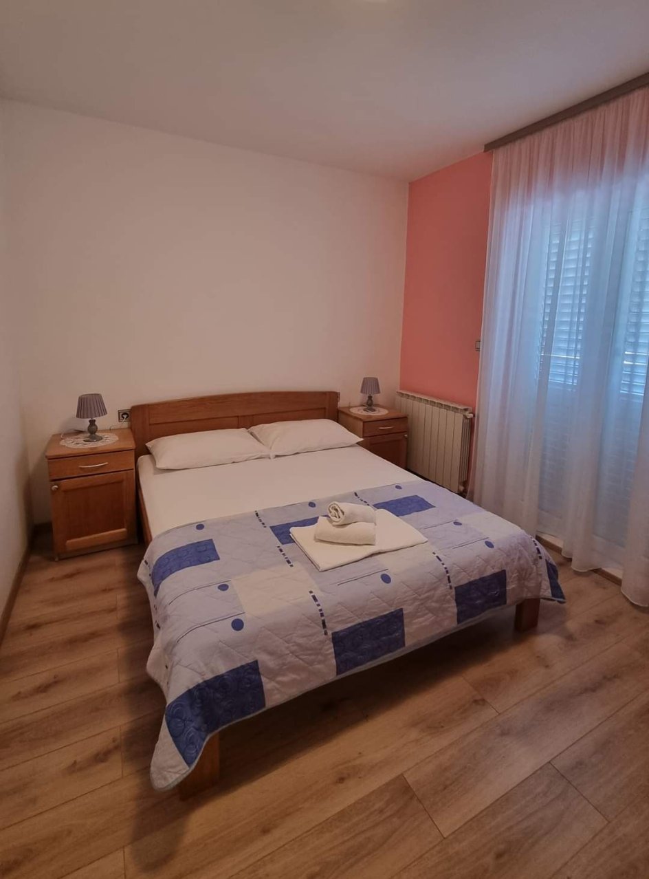 50m²; spavaća soba s bračnim krevetom, dnevni boravak s kaučeom na razvlačenje, kuhinja s blagavaonicom, kupaonica s WC-om, balkon, klima uređaj, Sat-TV, wi-fi, prvi kat, parkirno mjesto