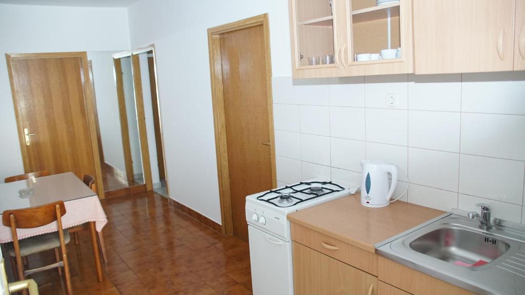 Tre camere da letto separate con letti matrimoniali, cucina, bagno con wc, balcone, aria condizionata, TV, WiFi, barbecue, primo piano, parcheggio