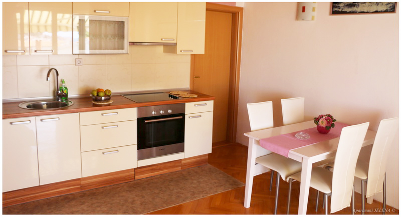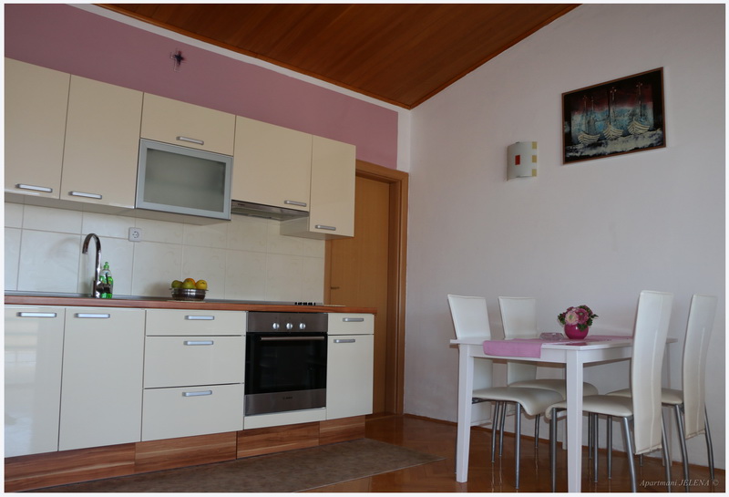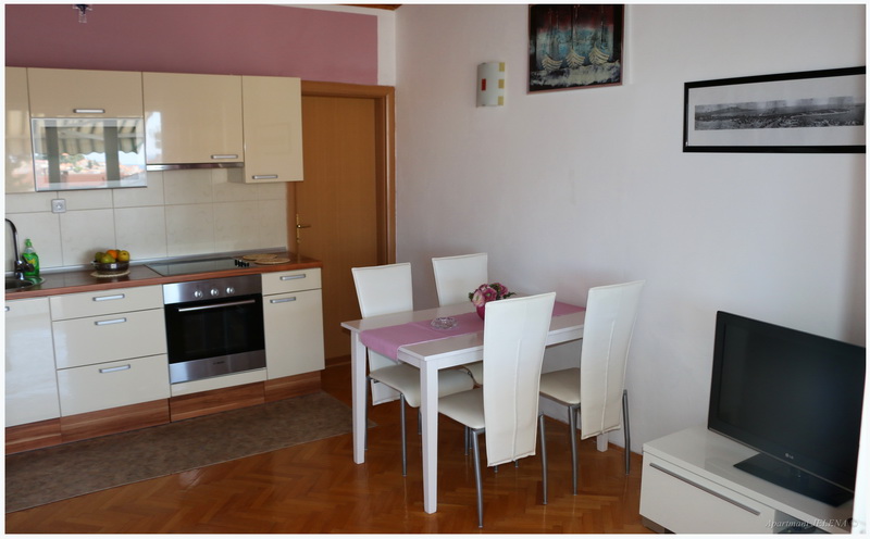 ok. 150 m od morza i plaży i około 350 m od centrum, balkon z małym widokiem na morze, kuchnia, podwójne łóżko, dostawka dla jednej do dwóch osób, WC, łazienka, klimatyzacja, TV, drugie piętro, parking.