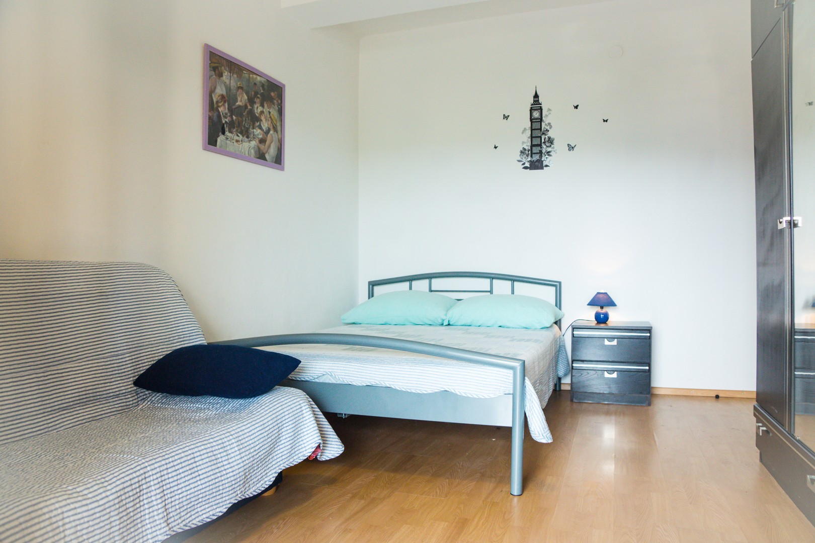 110 m²; trzy sypialnie, dwie z podwójnymi łóżkami i jedna z dwoma pojedynczymi łóżkami; Pokój dzienny z rozkładaną kanapą, kuchnia z jadalnią; dwie pełne wanny, duży taras, klimatyzacja, telewizja satelitarna, wifi, wysoki parter, parking