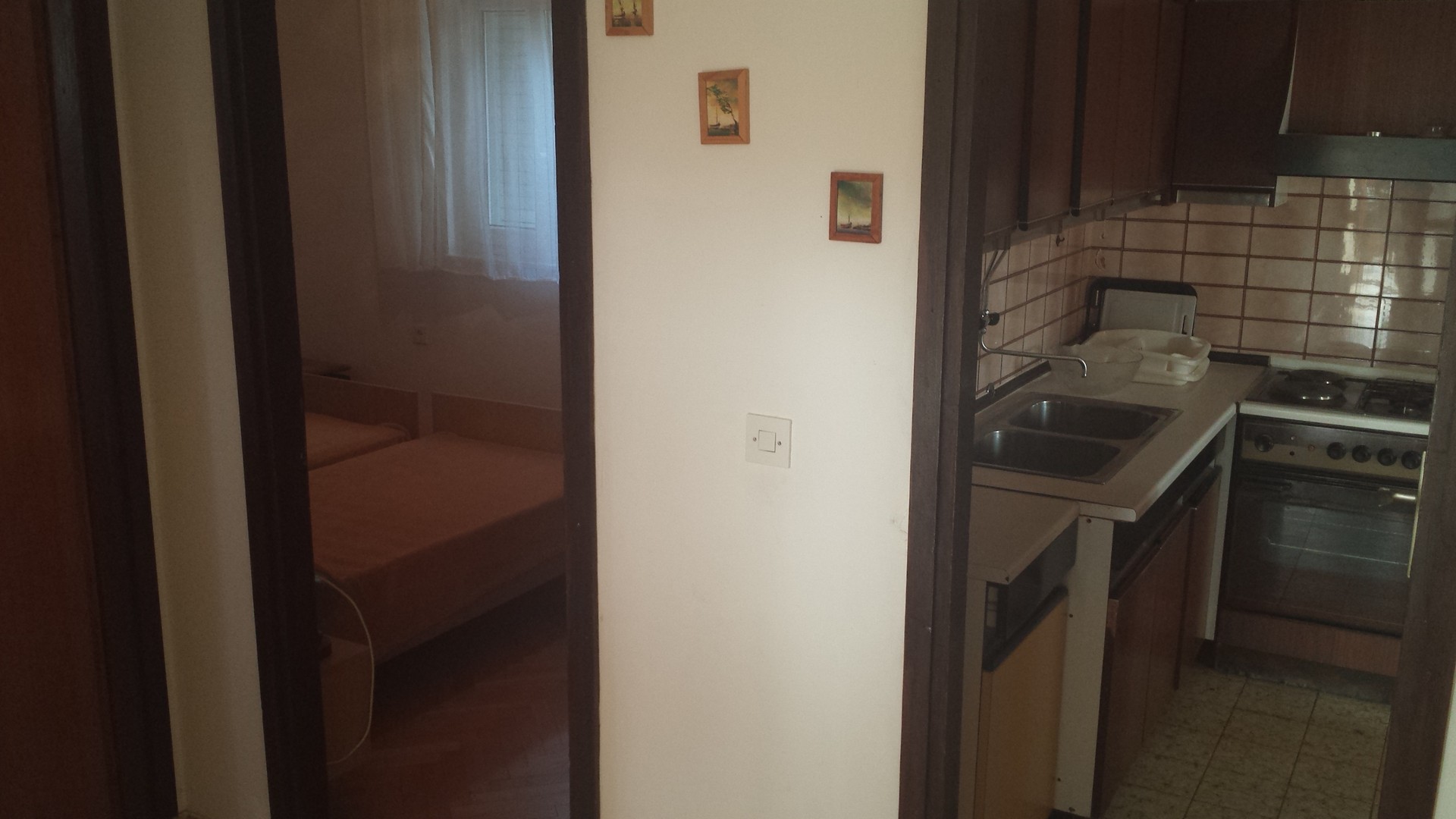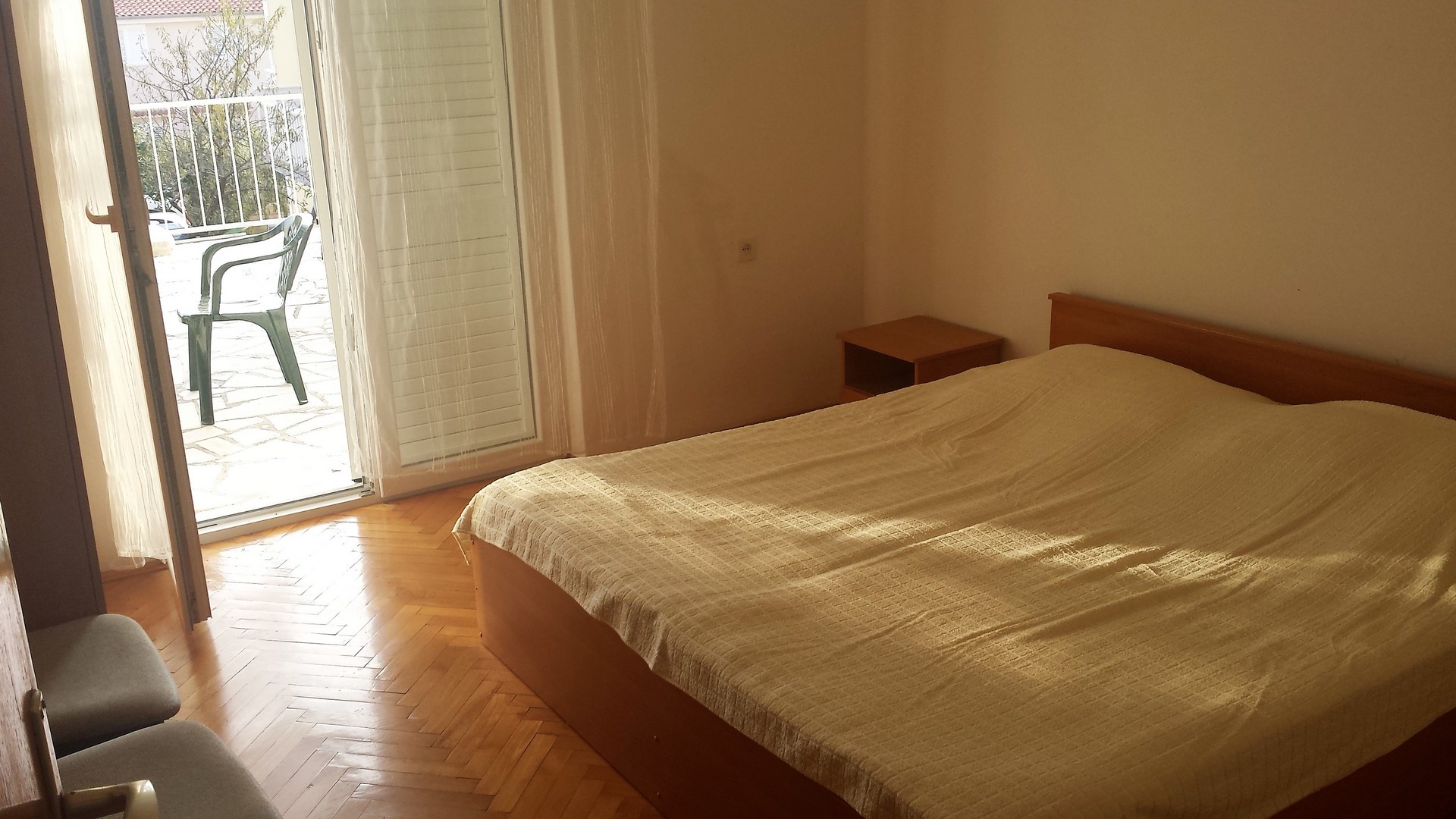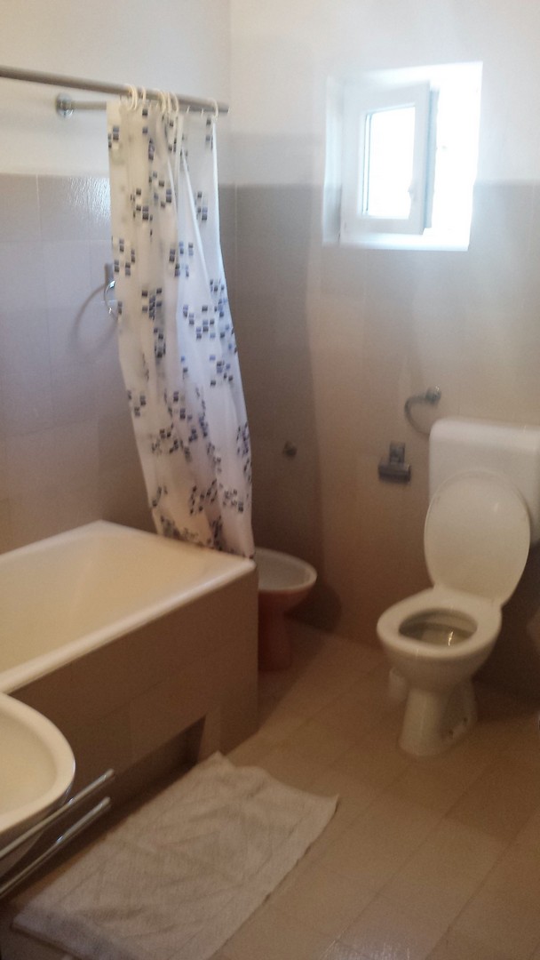 Trzy oddzielne sypialnie z podwójnymi łóżkami, kuchnia, pokój dzienny z dodatkowym łóżkiem dla jednej osoby, dwie łazienki z WC, taras, klimatyzacja, TV, WiFi, pierwsze piętro, parking