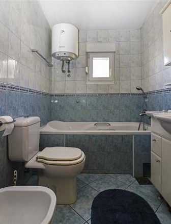Apartament 90m², dwie sypialnie, jedna z podwójnymi łóżkami i dwa pozostałe łóżka pojedyncze; Kuchnia z jadalnią, salonem, łazienka z WC, balkon, pralka, klimatyzacja, telewizja satelitarna, Wi-Fi, miejsce parkingowe