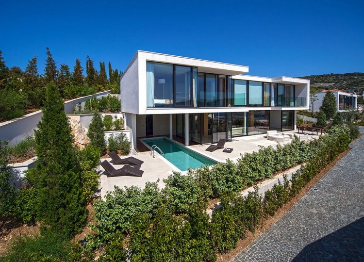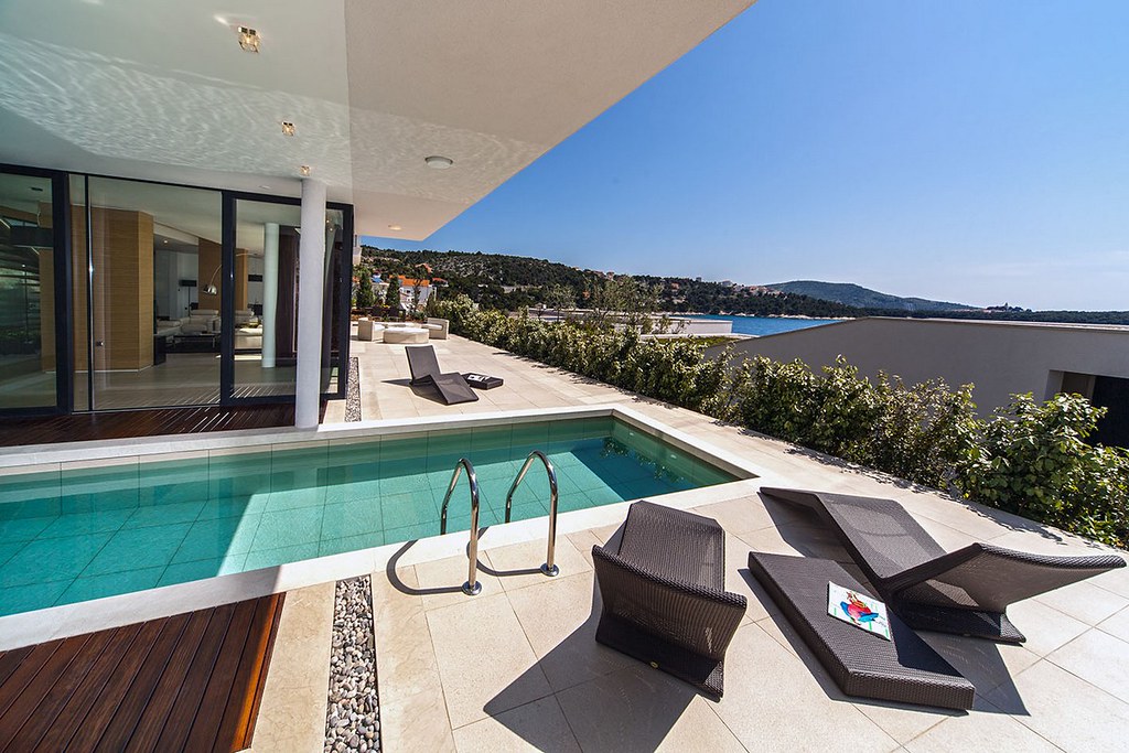 Luksusowa willa z częściowo zadaszonym basenem. Blisko morza niedaleko Primosten. Piękny widok na otwarte morze. Zakwaterowanie na niezapomniane wakacje dla maksymalnie 6 osób.