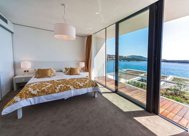 Pierwsze piętro: 1 sypialnia główna (30 m2) z podwójnym łóżkiem (2x90x200 cm), sofą, TV SAT / LCD, łazienką, garderobą, balkonem (6 m2, piękne widoki na morze); 1 sypialnia z podwójnym łóżkiem (2x90x200 cm), TV SAT / LCD, łazienką, otwiera się na balkon (6 m2, niesamowite widoki na morze); TV SAT / LCD, łazienką, francuskim balkonem. Zadaszony parking w willi na dwa samochody.