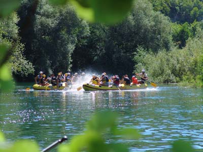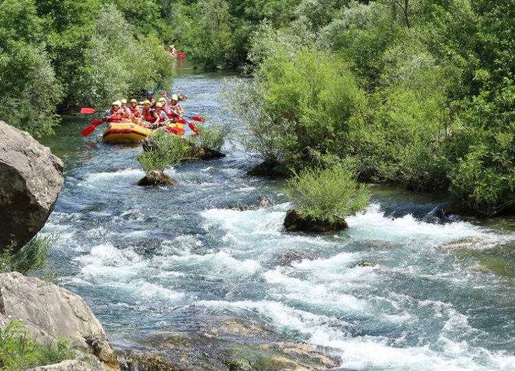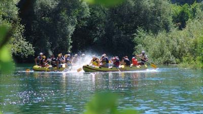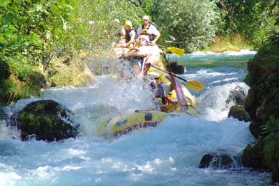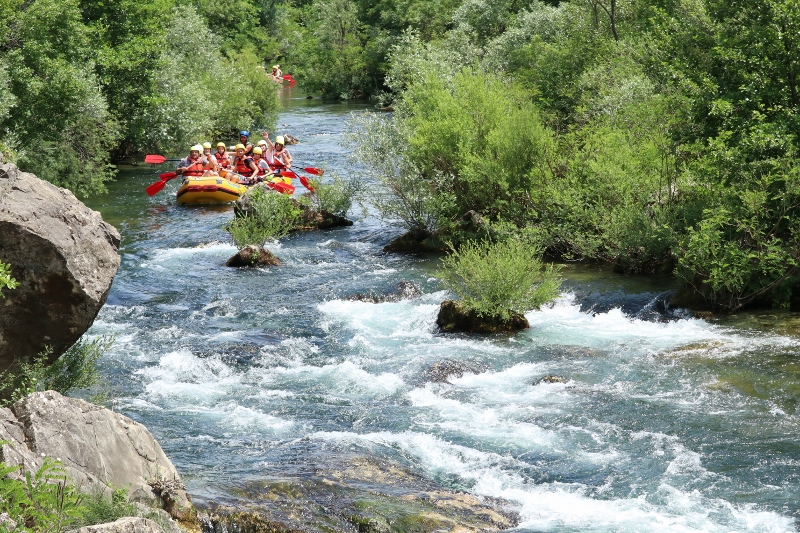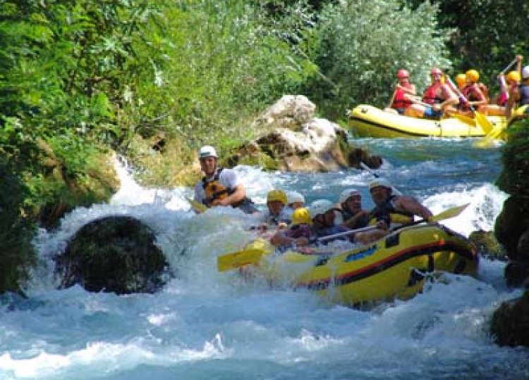 Cetina ist der längste Fluss in Dalmatien. Wegen der vielen Stromschnellen und Wasserfälle sowie der Rauwacke –Klippen ist es gut geeignet für Rafting durch eine Schlucht, unter deren mächtigen Klippen die Cetina mit ihren zahlreichen Stromschnellen bis zum Meer fließt. Acht bis zehn Teilnehmer befinden sich in einem Boot, bewältigen ankommende Hindernisse auf dem Fluss – eine Teamarbeit umgeben von Natur pur.