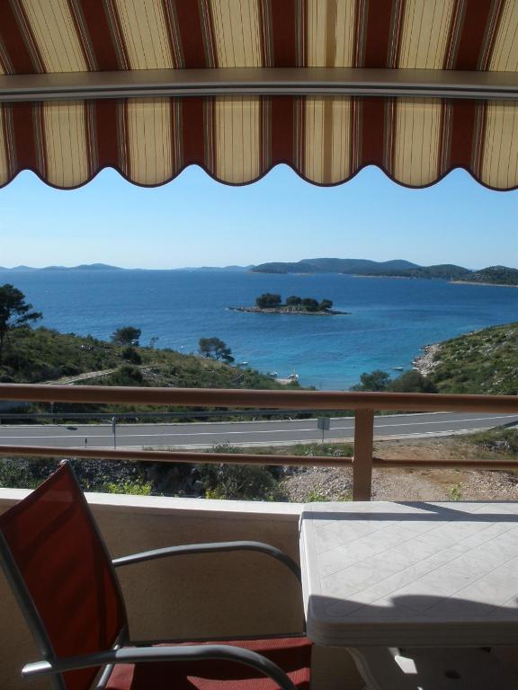 Ferienwohnung von ca. 30 m2 mit Blick auf das Meer und die Insel Krbelica.