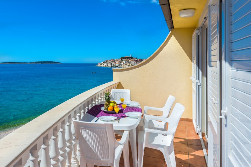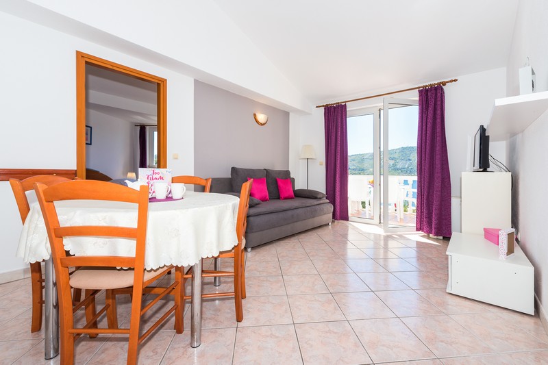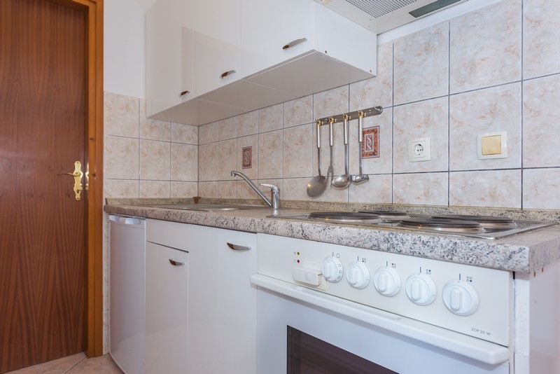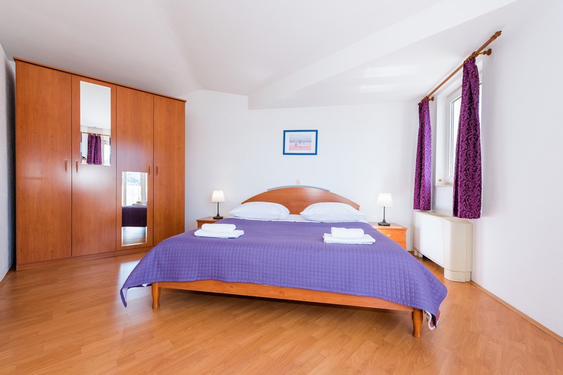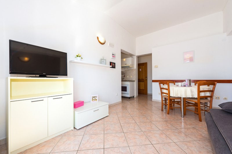 Ferienwohnung 6 vom Typ 2+2 befindet sich im zweiten Stock und besteht aus einem Schlafzimmer, einem Wohnzimmer mit Schlafsofa für zwei Personen (160x200), einer Küche, einem Badezimmer und einem Balkon mit Meerblick. Die Küche ist mit Koch- und Serviergeschirr ausgestattet.