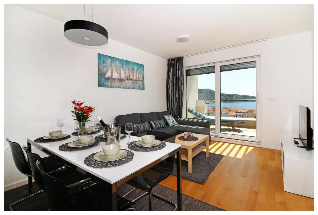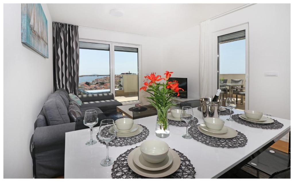 The apartment area is approximately 81 m2. Excellent location, near the beach and the center of Primosten.