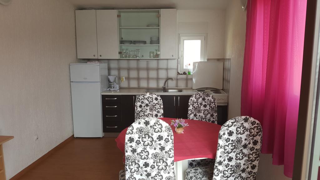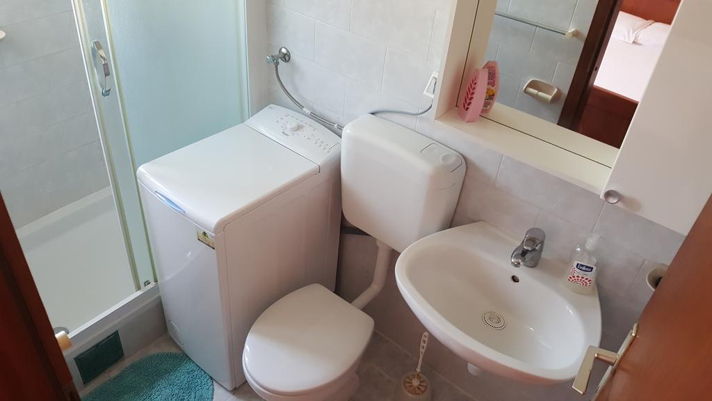 10 m from the sea and the beach, terrace with sea view and view on Primošten, kitchen, 2 bedrooms each one with double and own toilet-bathroom, air condition, SAT-TV, second floor, parking