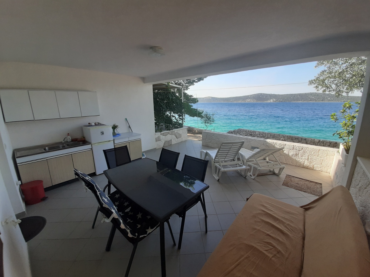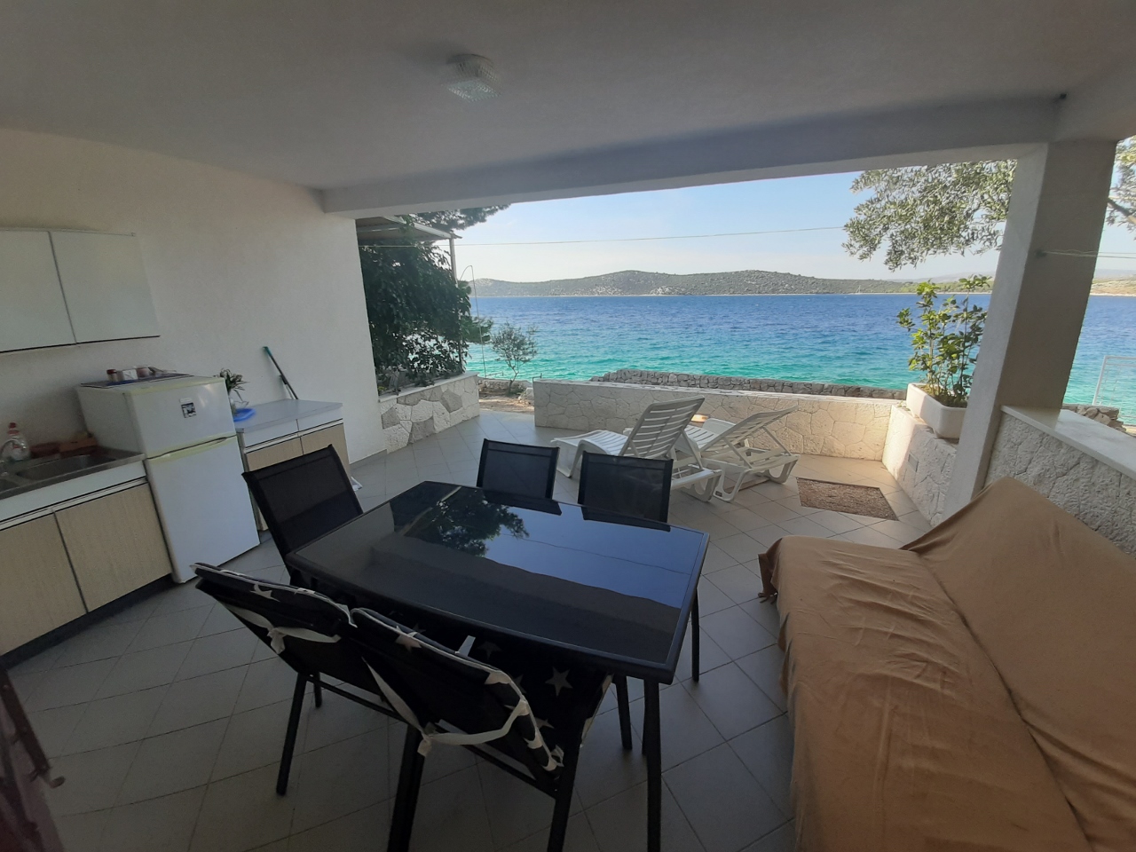 Studio apartment for 2+1 people with a large terrace by the sea.