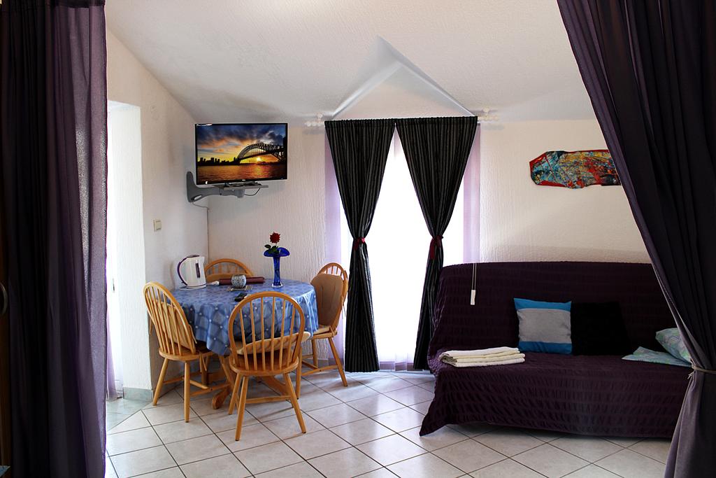 Studio apartment 35m², double bed, sofa bed, kitchen with dining room, bathroom with toilet, balcony, air conditioning, Sat-TV, wi-fi, parking space.