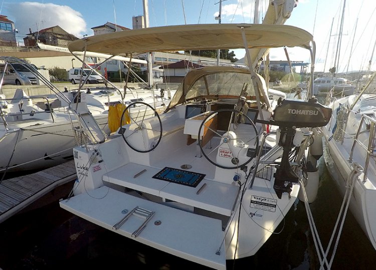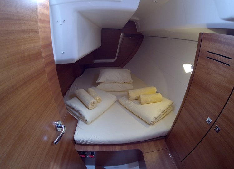Extra large water tank of 380 liters, larger engine 30 hp, shallow draft 1.55 m for less stress when anchoring, self-propelled jib for easier sailing, solar panel for better power reserve. Built-in web heating provides comfort in both early and late season!