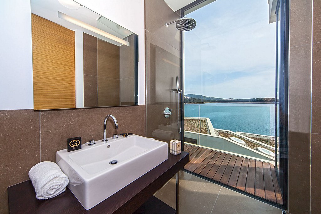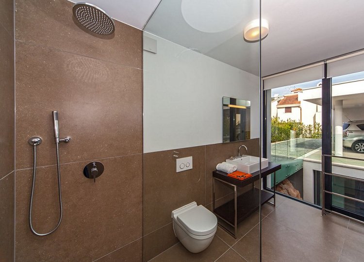 Premier étage: 1 chambre avec lit double (2x90x200 cm), TV SAT / LCD, en-suite, ouvre sur la loggia (4 m2, belle vue mer); 1 chambre avec lit double (2x90x200 cm), TV SAT / LCD, propre appartement, loggia ouverte (3 m2, belle vue mer), balcon français; 1 chambre avec 2 lits (2x90x200 cm), TV SAT / LCD, propre appartement, ouvre sur la même loggia (3 m2), balcon français. Parking sur le toit de la villa pour deux voitures.