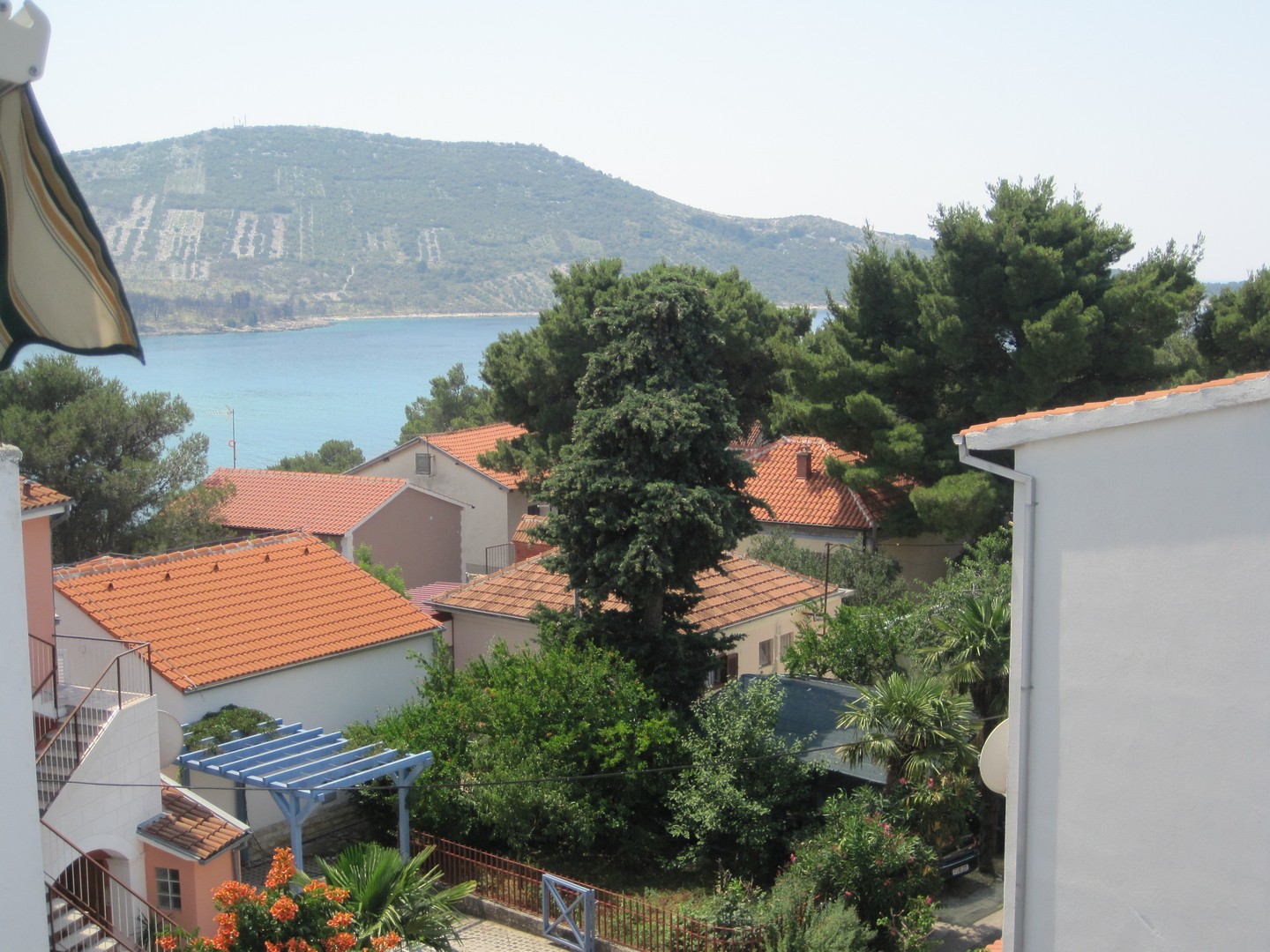 cca 150 m od mora i plaže i cca 350 m od centra, balkon sa malim pogledom na more, kuhinja,bračni krevet, WC-kupatilo, klima, TV, drugi kat, parking