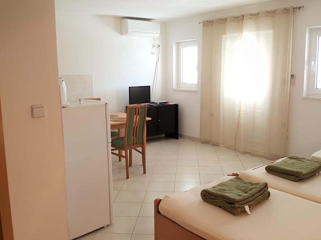 25m²; Spavća soba s bračnim krevetom i doatnim krevetom za jednu osobu; kuhinja, kupaonica s WC-om, terasa, klima uređaj, TV, wi-fi, prizemlje, parkirno mjesto