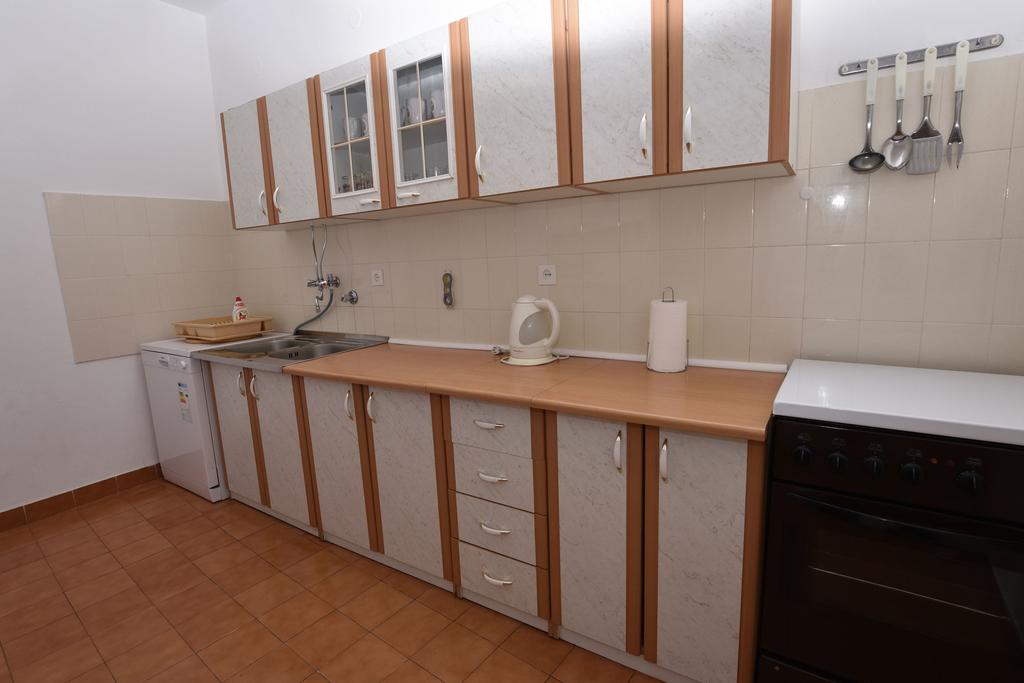 Četiri spavaće sobe od kojh su tri s bračnim krevetimna i jedna s dva kreveta za jednu osobu, kuhinja, dnevni boravak, dvije kupaonice s WC-om, balkon, klima, TV, prvi kat, parkirno mjesto