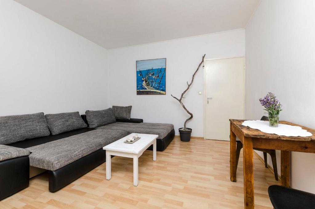 AP3 1/4+1 Tip: Apartman , Broj kreveta: 4 , dodatni ležajevi: 1 , spavaće sobe: 2 Spavaća soba 1: 1 veliki bračni krevet 1 kauč na razvlačenje Spavaća soba 2: 1 veliki bračni krevet Apartman s balkonom za 4 do 5 osoba Pregledaj