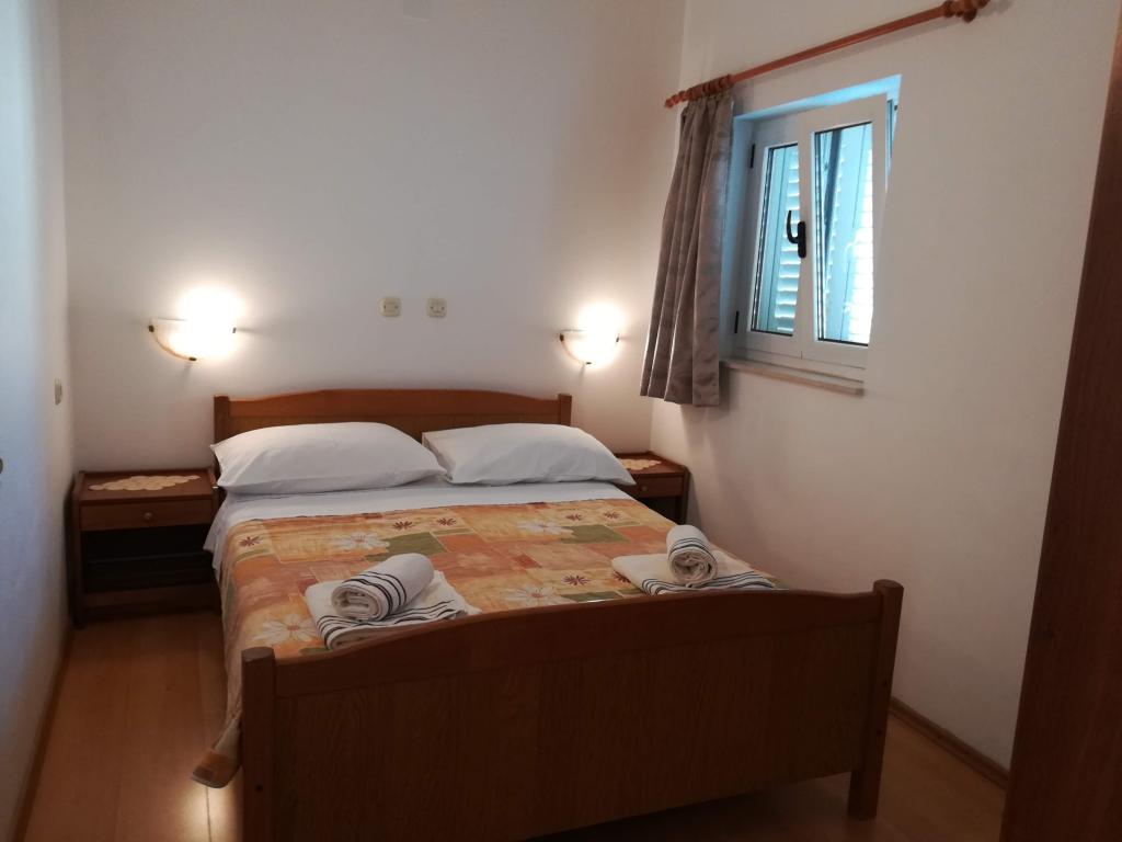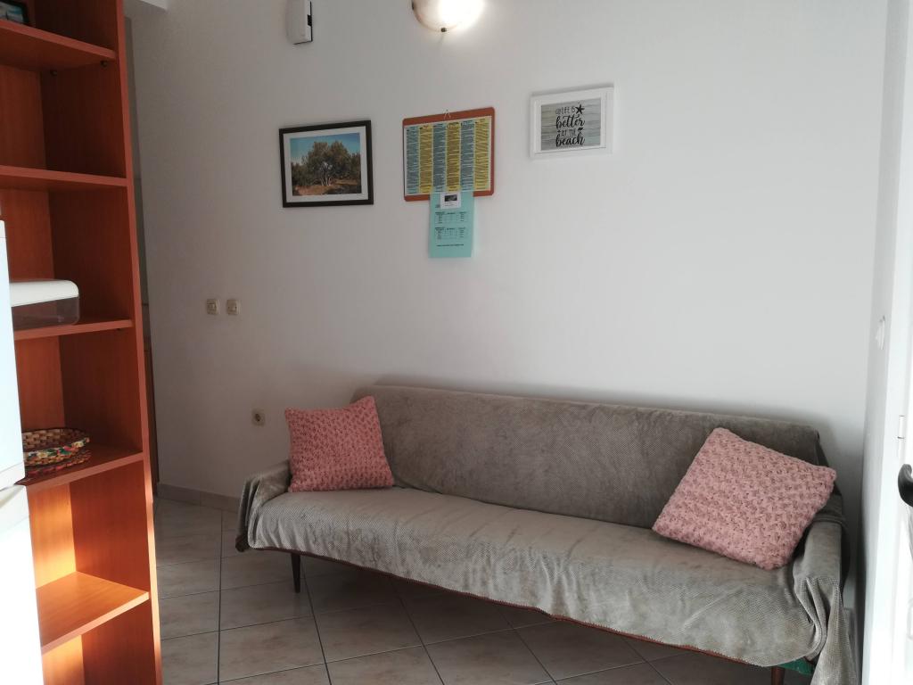 Apartman površine od 55 m2, 2 sobe s bračnim krevetom, kuhinja, kupaonica s wc-om, balkon, klima uređaj, TV, parkirno mjesto, 10 metera od plaže