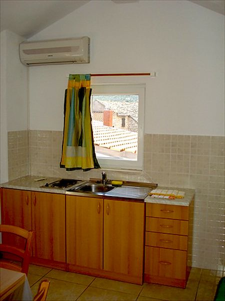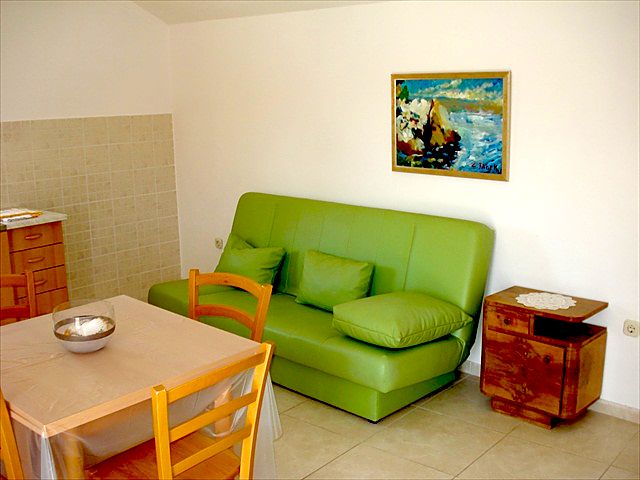 Apartman A2+2 nalazi se na drugom katu obiteljske kuće. Sadrži kuhinju, dnevni boravak, te jednu spavaće sobe i kupaonu. U spavaćoj sobi nalazi se bračni krevet te ormar. Iz dnevnog boravka izlazi se na balkon s prekrasnim pogledom na more. Apartman je klimatiziran te opremljen sa satelitskom televizijom, WI-FI, te hladnjak. U cijenu apartmana ulaze posteljina te ručnici.