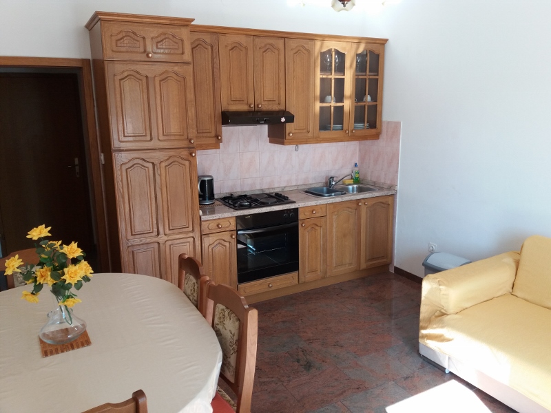 Spavaća soba sa tri kreveta, dnevni boravak sa kaučem na rasklapanje, kuhinja, kupaonica sa WC-om, balkon, TV satelitska, klima, WiFi, 1. kat, parkirno mjesto, mogućnost korištenja roštilja u dvorištu kuće.