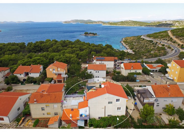 Apartman za 4 osobe s terasom i pogledom na more. Klima u svakoj spavaćoj sobi. Malo i mirno naselje Bilo u općini Primošten, idealno za relaksirajući odmor u okrilju prirode. Udaljenost 150 m plaže.